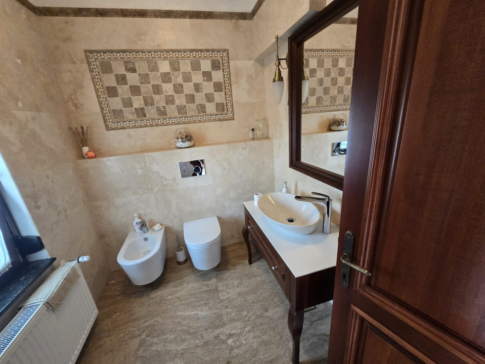 Centrală termică proprie, încălzirea este prin pardoseală în zonele acoperite cu travertin